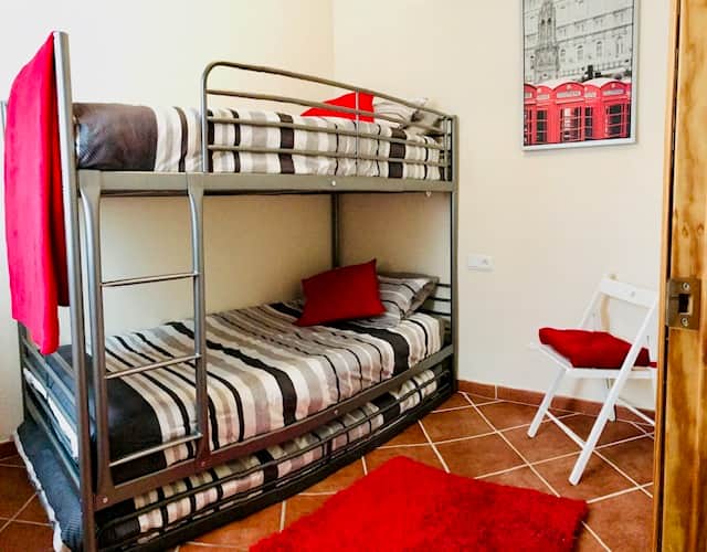 The second bedroom has a bunk-bed and drawers for clothes.